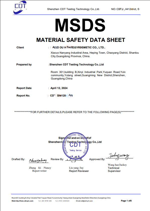 سلامة المنتج: صحيفة بيانات سلامة المواد (MSDS)