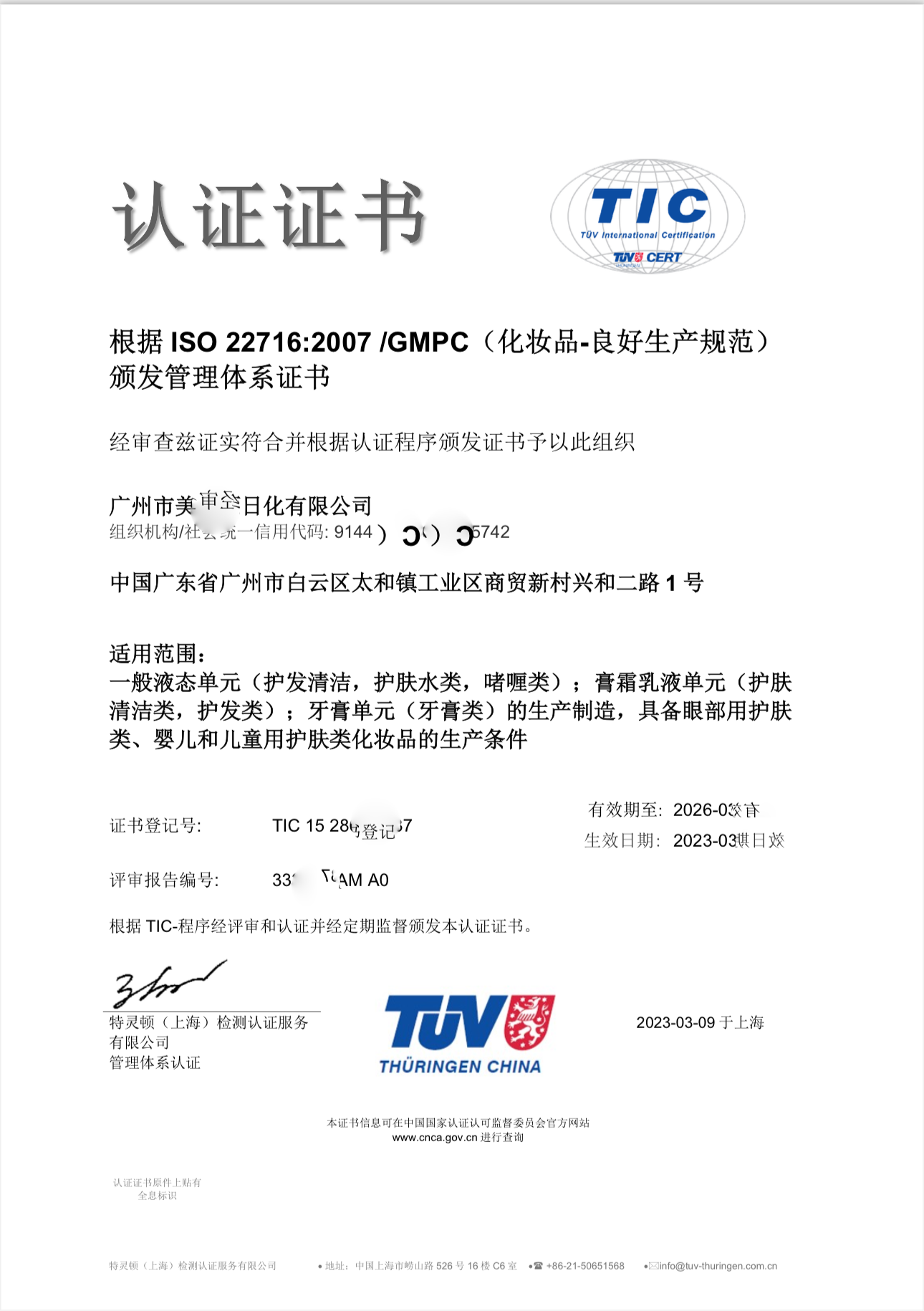 المعايير: الالتزام بمعيار ISO 22716 GMP لمستحضرات التجميل.